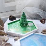 盤面上不只色彩繽紛,更有一棵立體聖誕擴香石小樹靜靜佇立,
